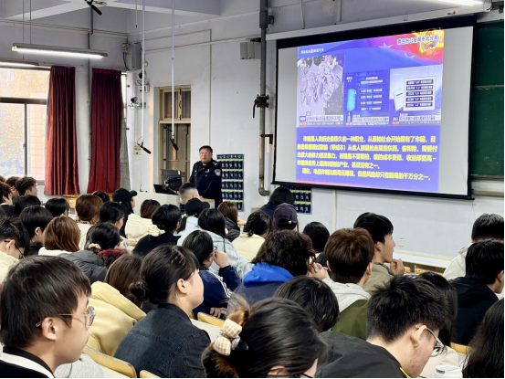 学院党委副书记徐佐君书记作开场致辞,对陈虹警官的到来表示热烈欢迎和衷心感谢。徐书记指出,当前电信网络诈骗手段层出不穷,高校学生已成为不法分子重点瞄准的群体之一;他强调,举办此次讲座是学院落实“平安校园”建设、关爱学生健康成长的重要举措,希望全体同学能够认真聆听,将反诈知识内化于心、外化于行,切实提高自我防范意识,共同营造安全、和谐、稳定的校园环境。