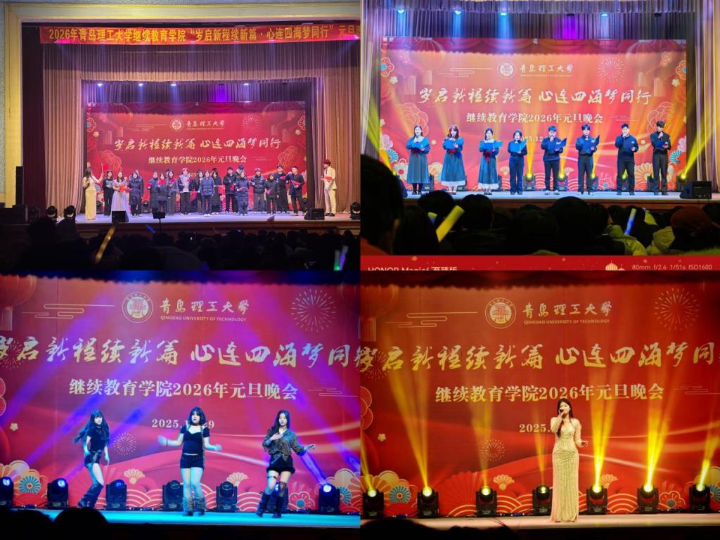 此次元旦晚会不仅是一场视听盛宴,更是一堂生动的美育与思政融合课。节目紧扣时代脉搏,融思想性、艺术性、观赏性于一体,充分展示了继续教育学院坚持立德树人根本任务,持续推进五育并举、全面发展的育人成果。回首2025,步履坚定;展望2026,信心满怀。青岛理工大学继续教育学院全体师生将以更加饱满的热情、更加昂扬的姿态,携手并进,砥砺前行,在新时代的征程上谱写更加辉煌的篇章!