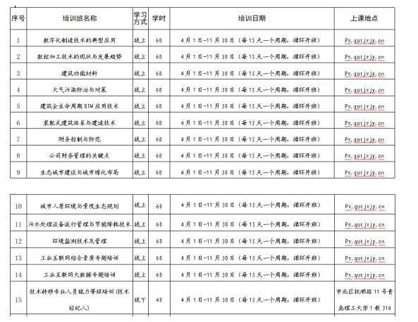 2026年,根据社会需求,青岛理工大学继续教育学院面向广大专业技术人员,开发整合优质数字化培训资源,推进线上线下相结合的“混合式”培训模式,为专业技术人员继续教育学习提供支持。经青岛市人社局备案批准,我校开设15门专业技术人员继续教育培训模块。课程开设时间为4月-11月。具体课程如下: