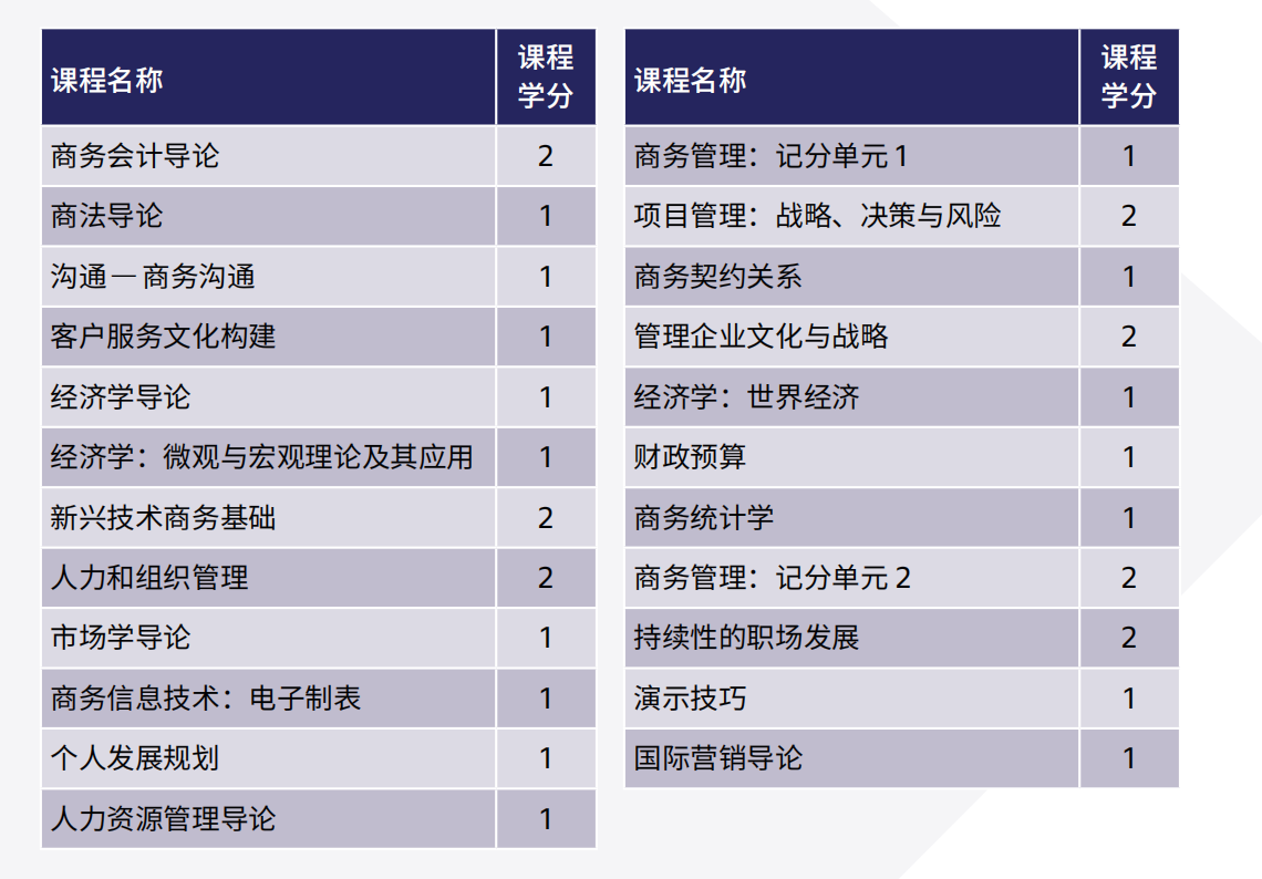 国外可对接专业:商务与管理、工商管理、国际商务、国际贸易与交流、国际商务与市场营销、全球商务管理、商务经济学、金融经济学、经济学与数据科学、供应链管理、国际经济与贸易、市场营销、商务与物流和供应链管理、创意文化管理、会展管理、人力资源管理、奢侈品管理、时尚管理、市场与媒体、国际事务、商业信息技术等;